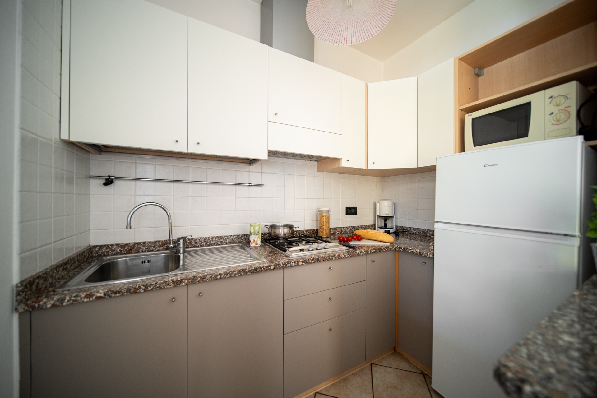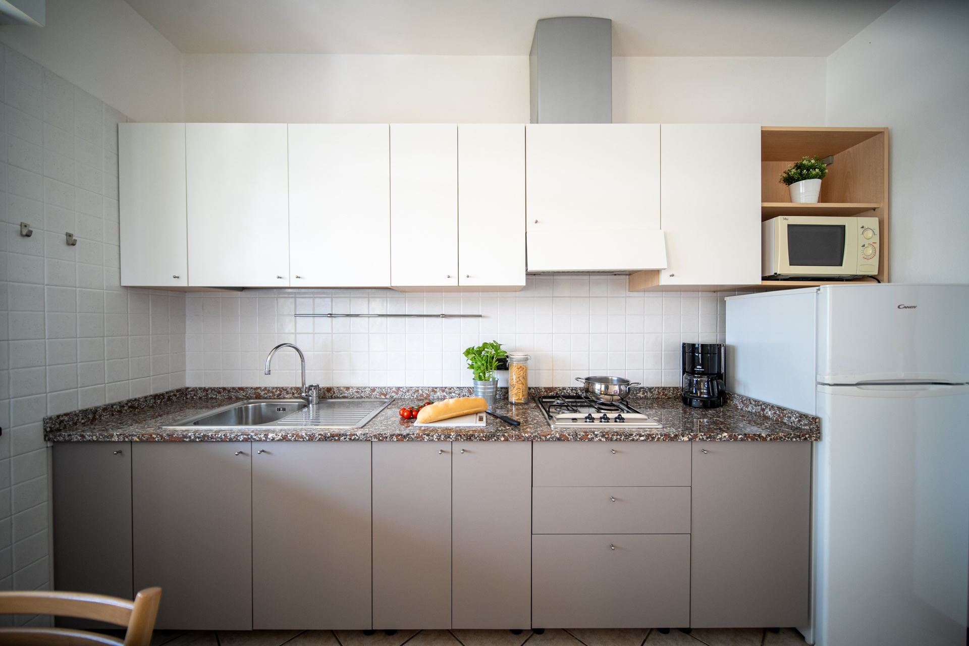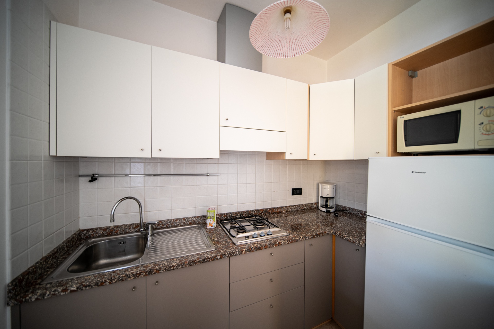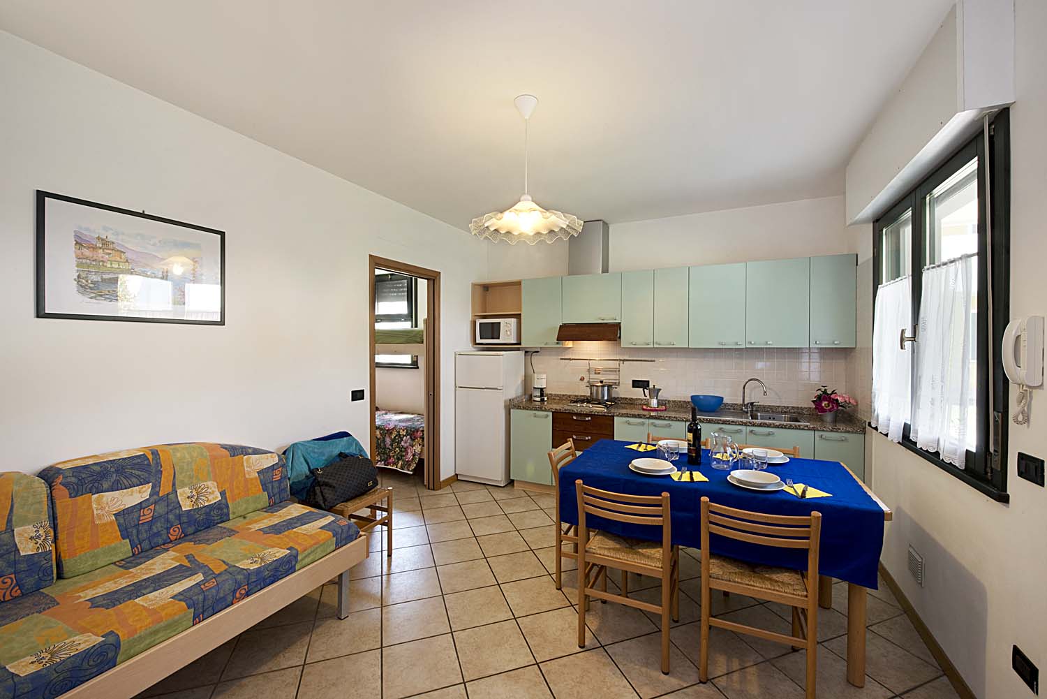 - Living-room with kitchenette and single sofa bed