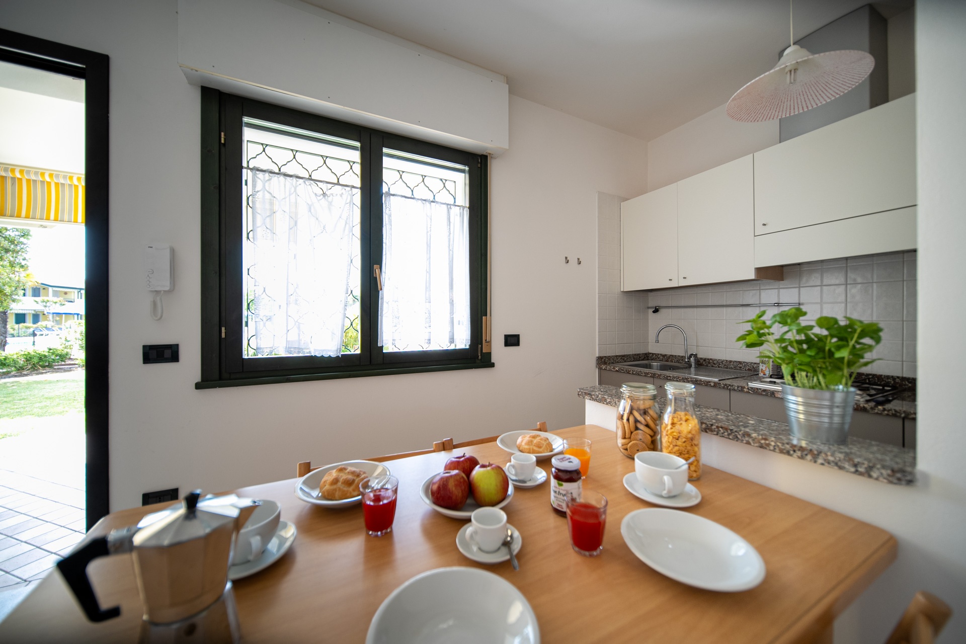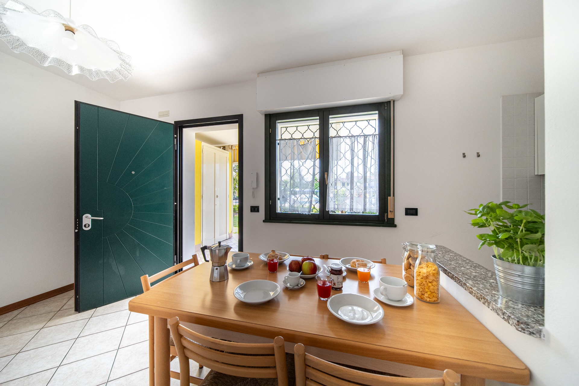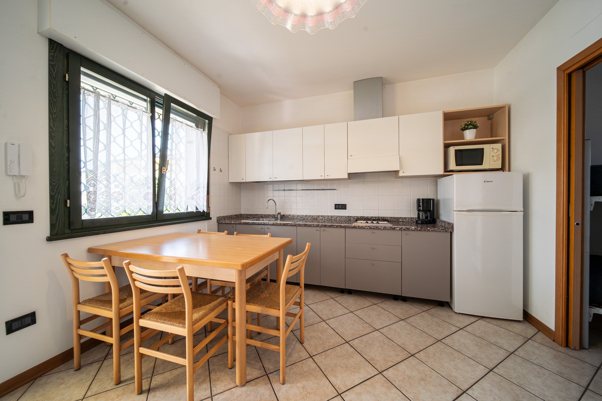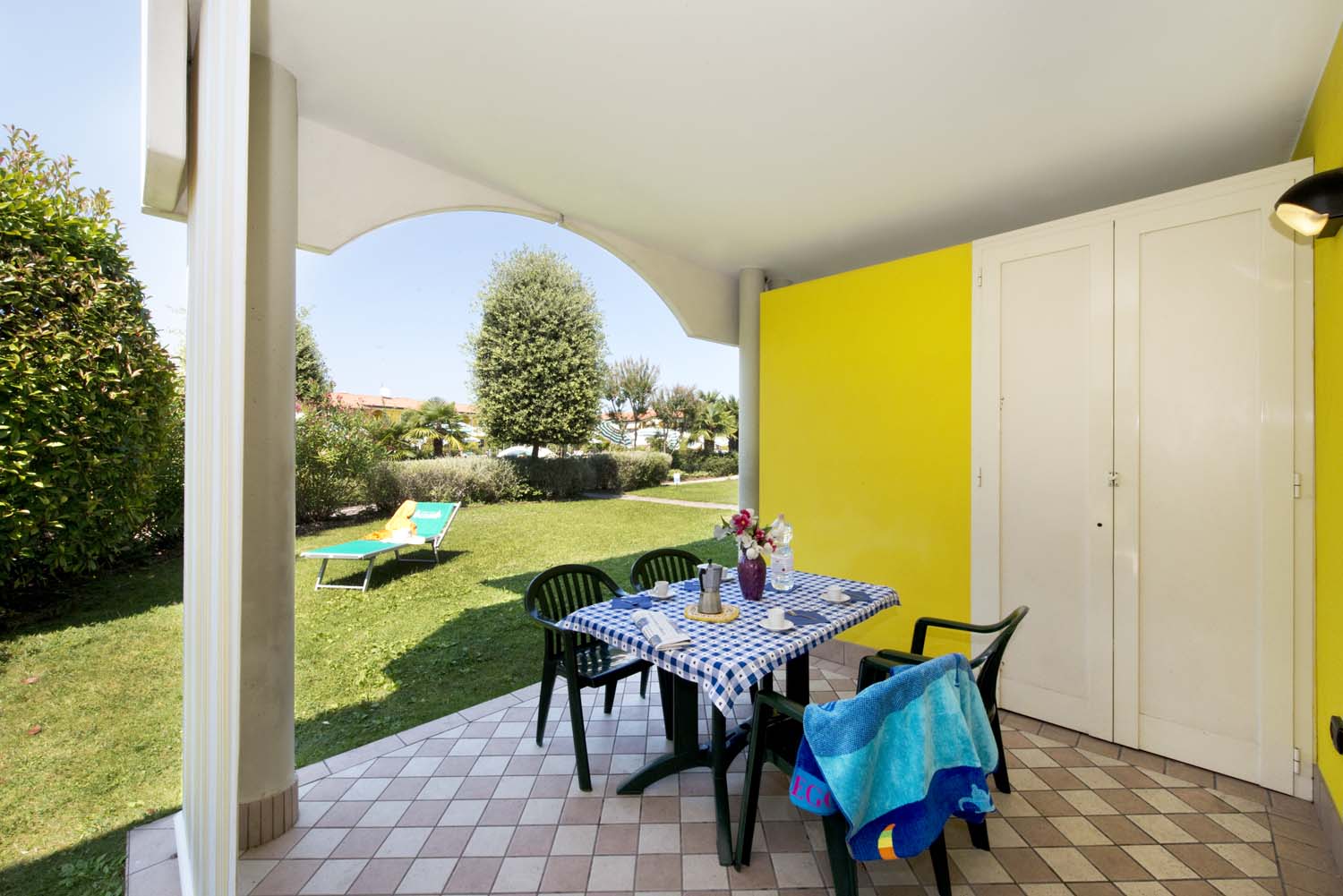 Modern, comfortable and very refined terraced houses (built in 2002) with swimming pool for adults and children, one outdoor fireplace in common, playground for children, communal washing machines and outdoor private parking places. At request, to be paid extra, parking place in garage.